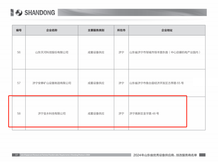 7月23日上午,全省工業(yè)領(lǐng)域設(shè)備更新和技術(shù)改造推進(jìn)會(huì)暨第五屆技改展洽會(huì)現(xiàn)場(chǎng)發(fā)布《2024年山東省優(yōu)秀設(shè)備供應(yīng)商、技改服務(wù)商名單》,濟(jì)寧金水科技有限公司成功入圍“山東省優(yōu)秀設(shè)備供應(yīng)商”名錄。